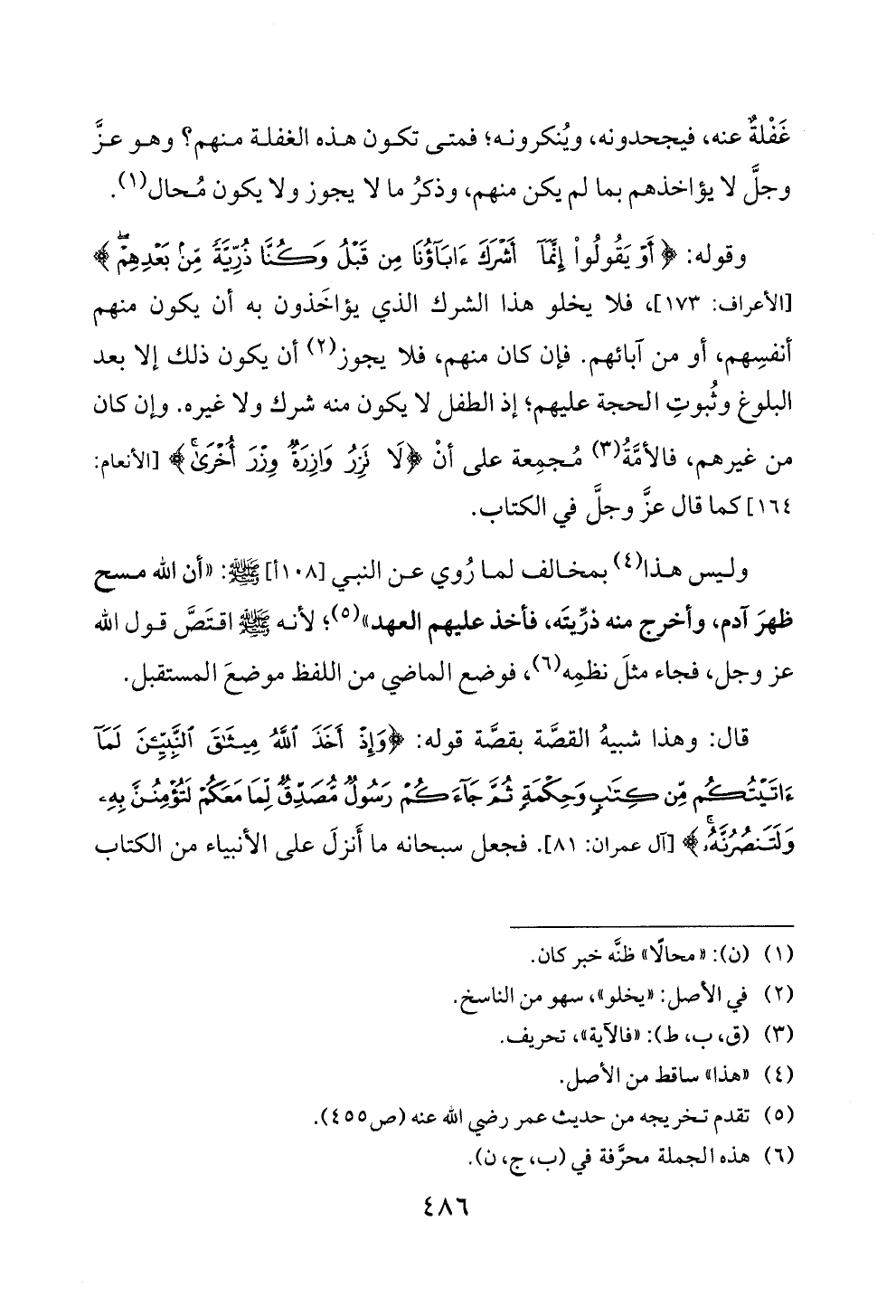 ظهر ادم، وأخرج منه ذريته، فاخذ عليهم العهد" (5)؛ لانه! يم اقتص قول الله