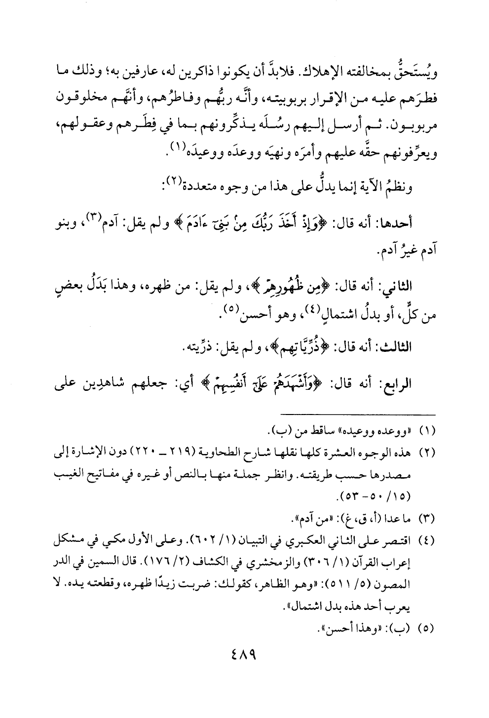 أحدها: انه قال: <و ذ أخذ ر! ك من بنى ءادم > ولم يقل: ادم (3)، وبنو