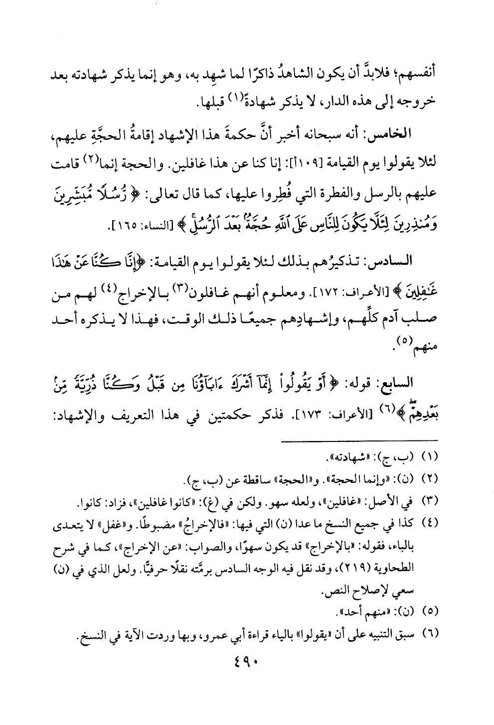 بعدهم > (6) [الاعراف: 173]. فذكر حكمتين في هذا التعريف والاشهاد: