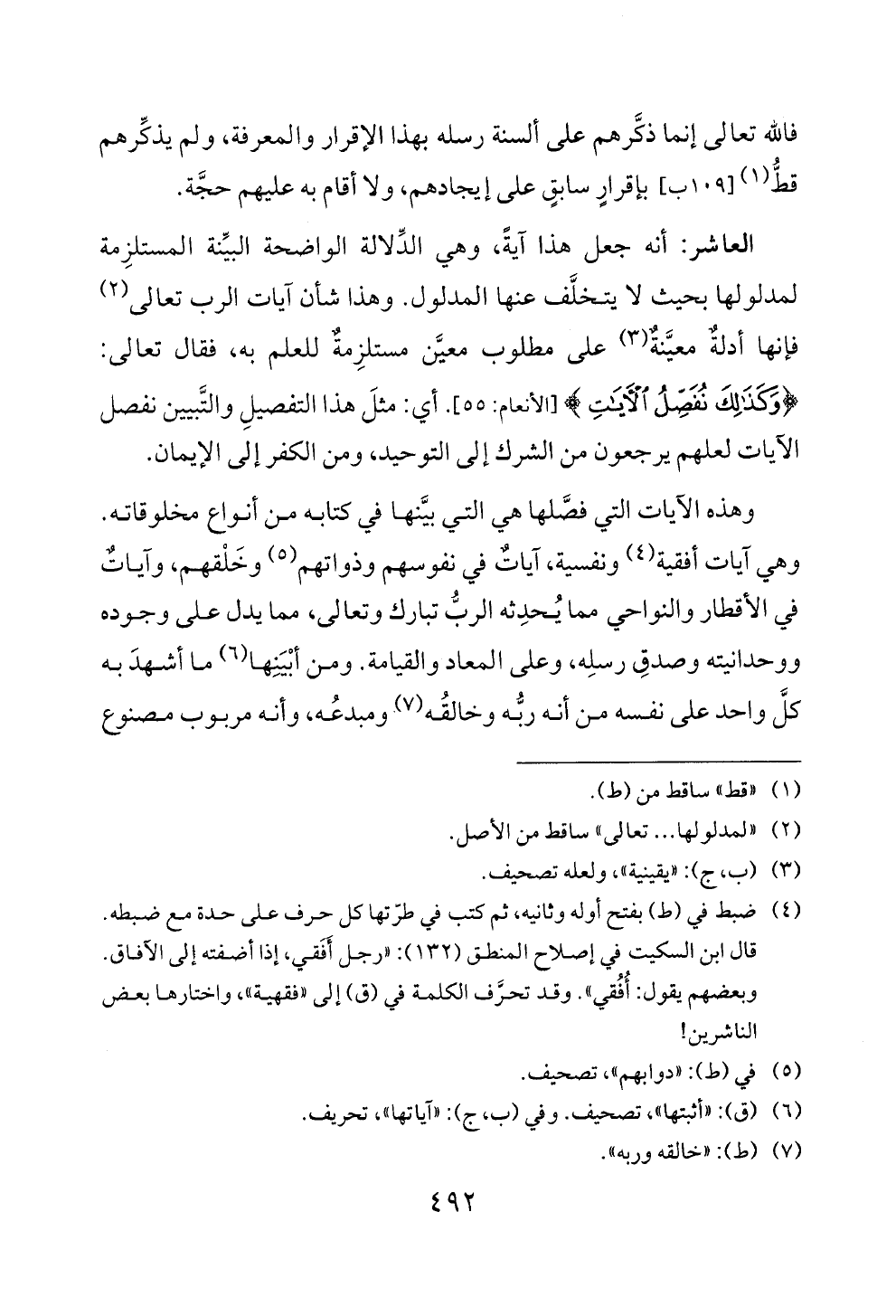 ووحدانيته وصدق رسله، وعلى المعاد و لقيامة. ومن أبينها (6) ما شهد به