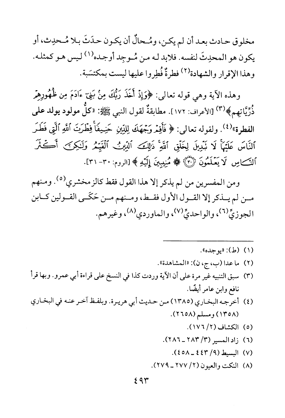 ذرياتهم) (3) 1 الاعراف: 172]! مطابقة لقول النبي ء! ي!: "كل مولود يولد على