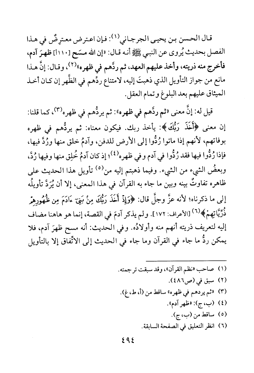 الفصل بحديث يروى عن النبي ع! ييه أنه قال: "إن الله مسح [0 1 1 ا] ظهر آدم،