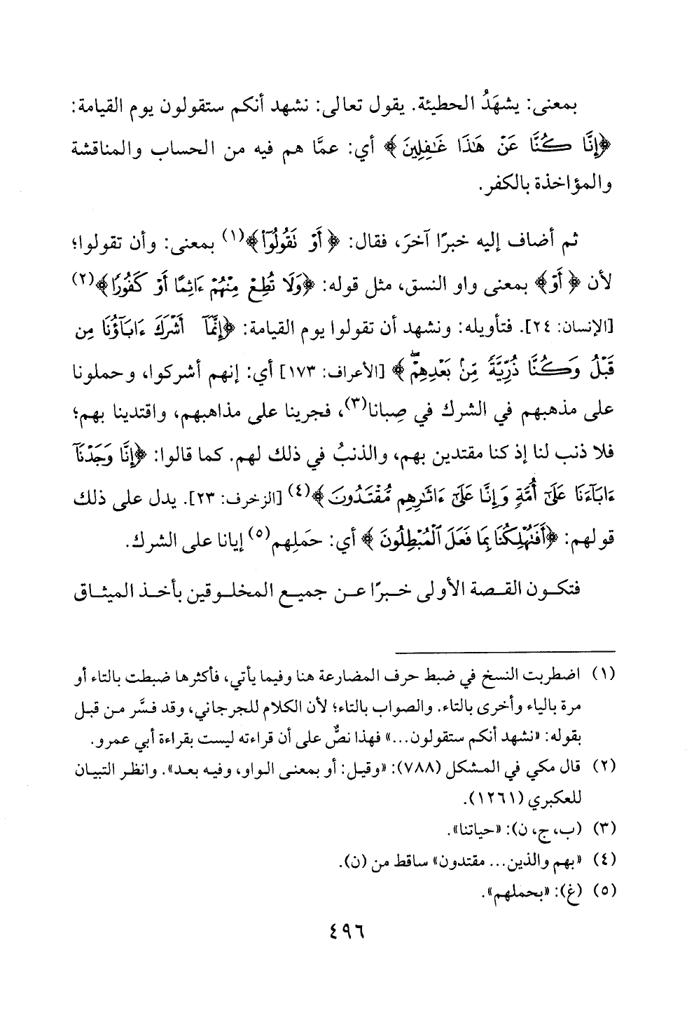 [لإنسان: 24]. فتاويله: ونشهد ان تقولوا يوم القيامة:! نما أشرك ءابآؤنا من