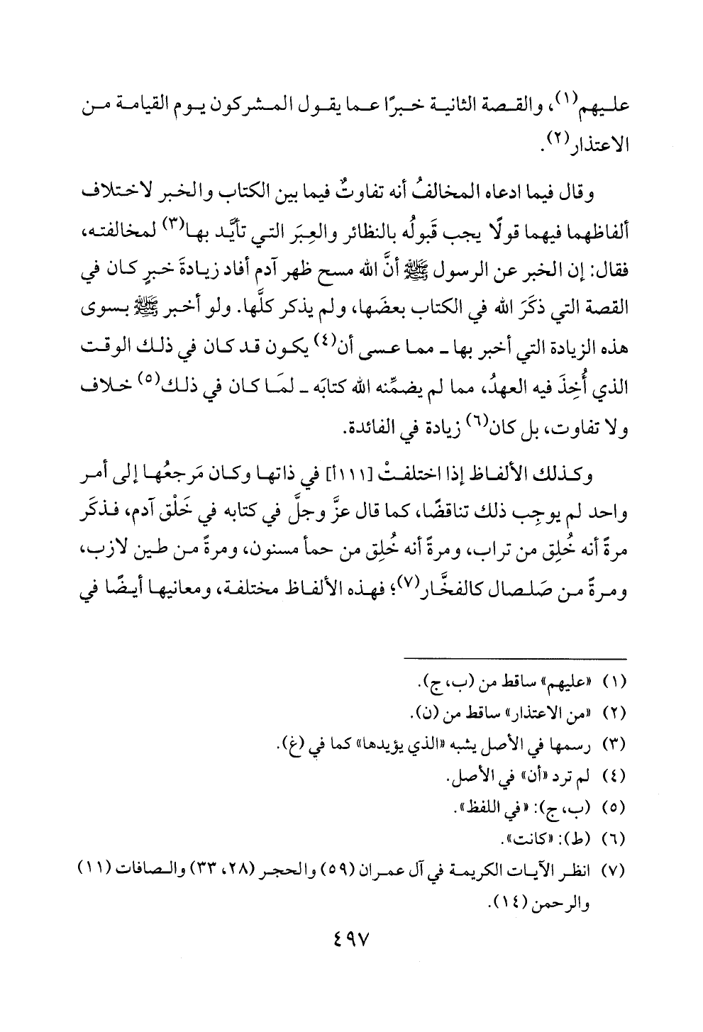 (7) انظر الايات الكريمة في ال عمران (9 ه) وا لحجر (28، 33) والصافات (1 1)