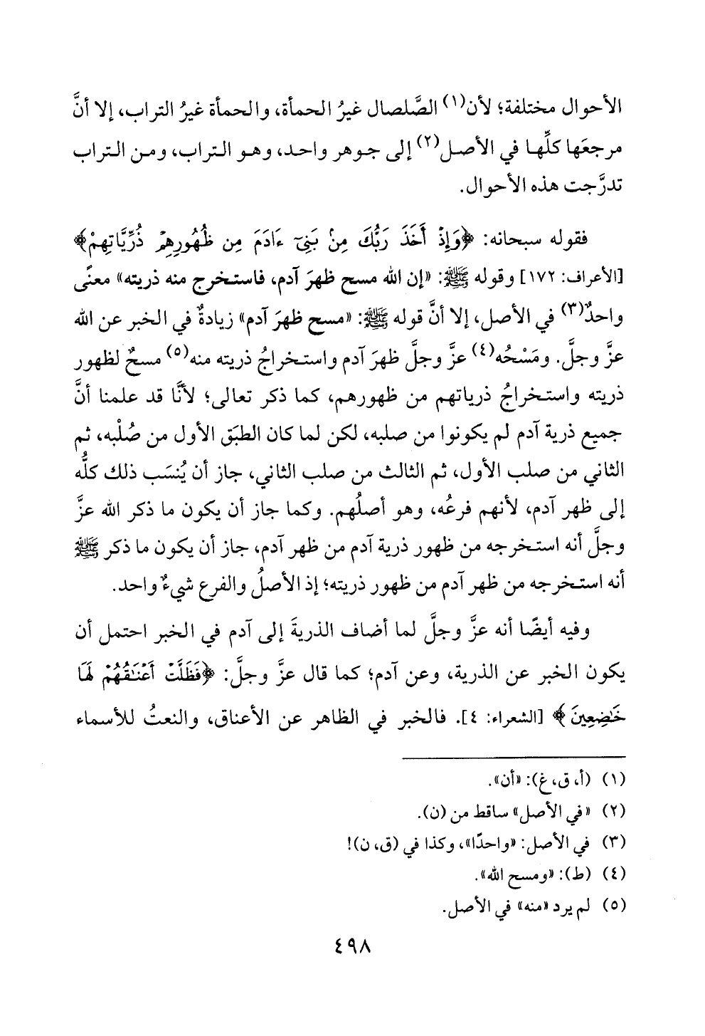 عز وجل. ومسحه (4) عز وجل ظهر ادم واستخراح ذريته منه (5) مسح لظهور