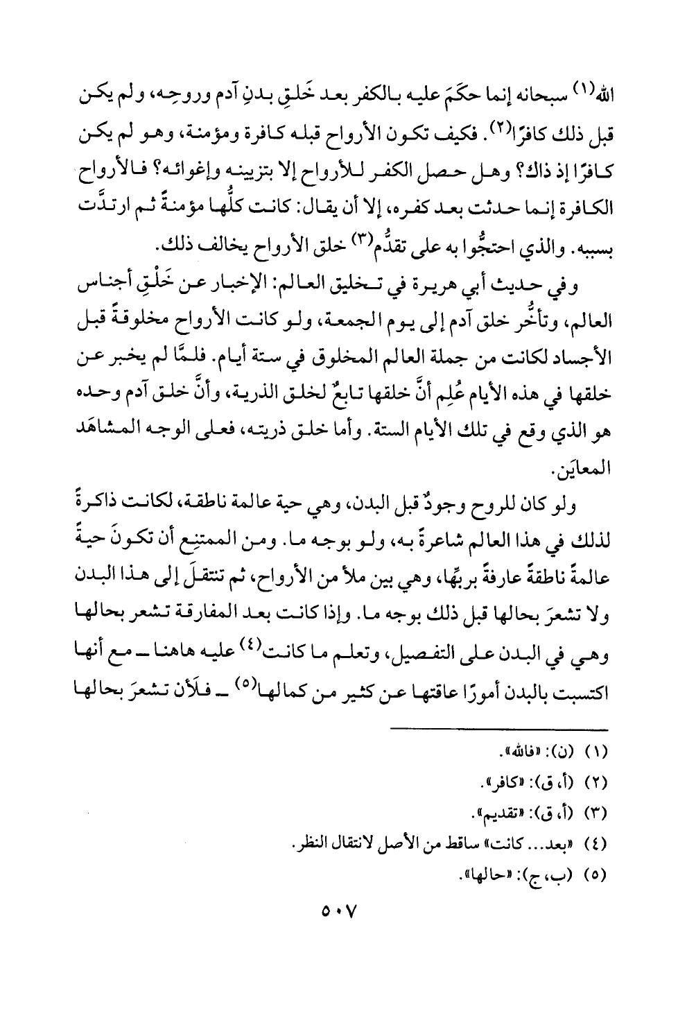 عالمة ناطقة عارفة بربها، وهي بين ملأ من الارواح، ئم تنتقل إلى هذا البدن