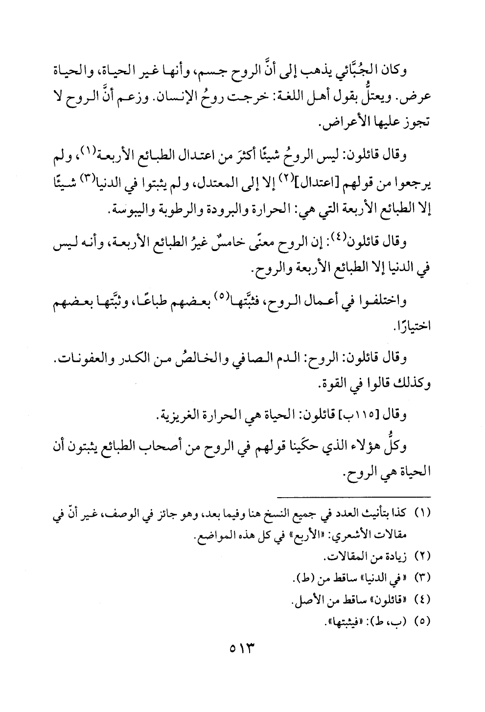 وقال قائلون (4): إن الروح معنى خامس غير الطبائع الاربعة، وانه ليس