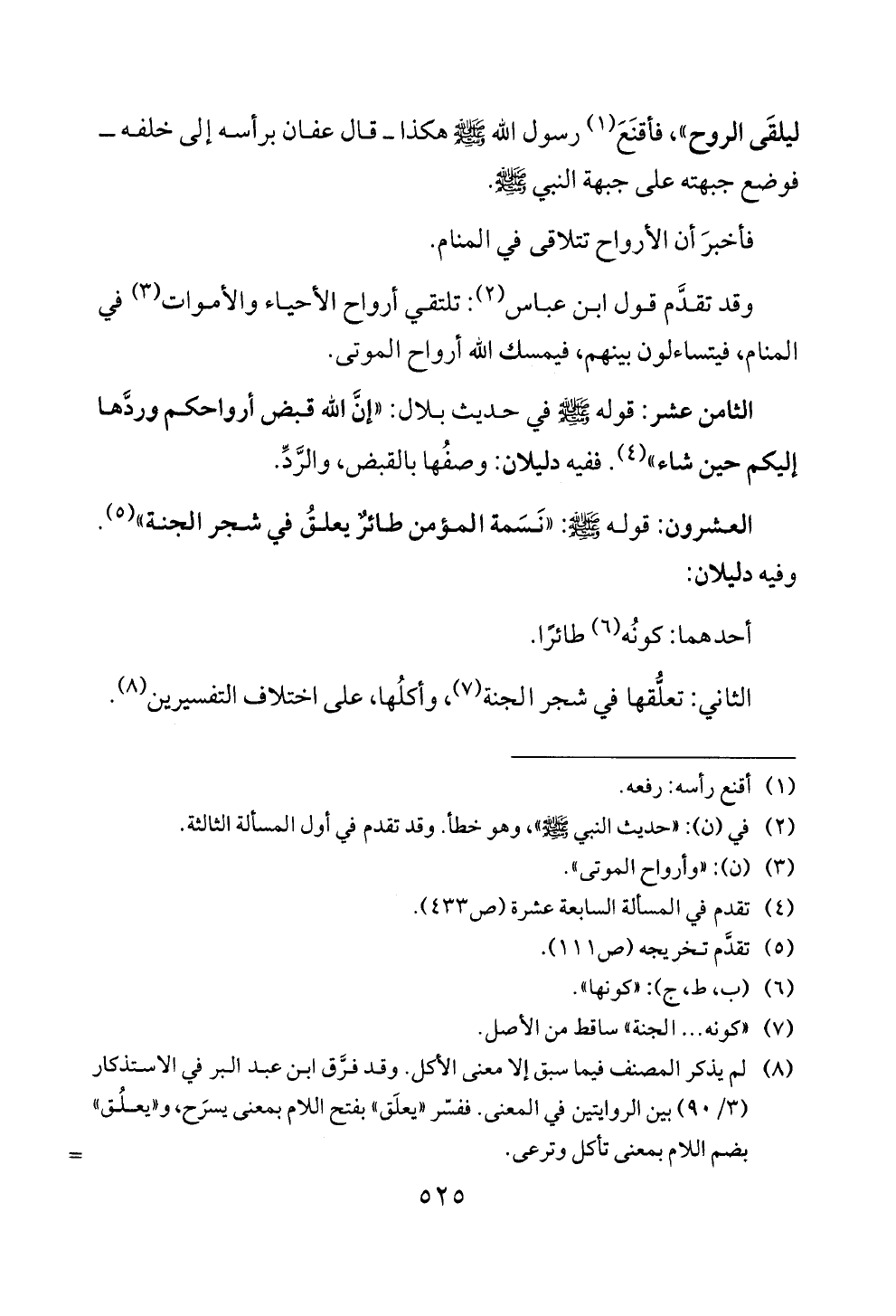 العشرون: قوله ع!: "نسمة ا لمؤمن طائر يعلق في شجر الجنة " (5).