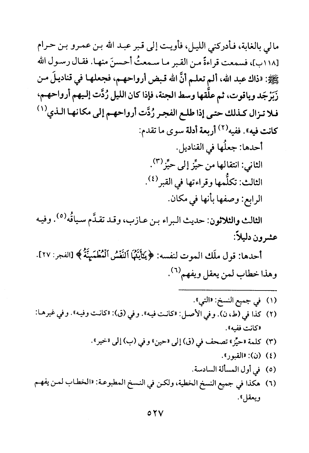 ى! ي!: " ذاك عبد الله، الم تعلم ان الله قبض ارواحهم، فجعلها في قناديل من