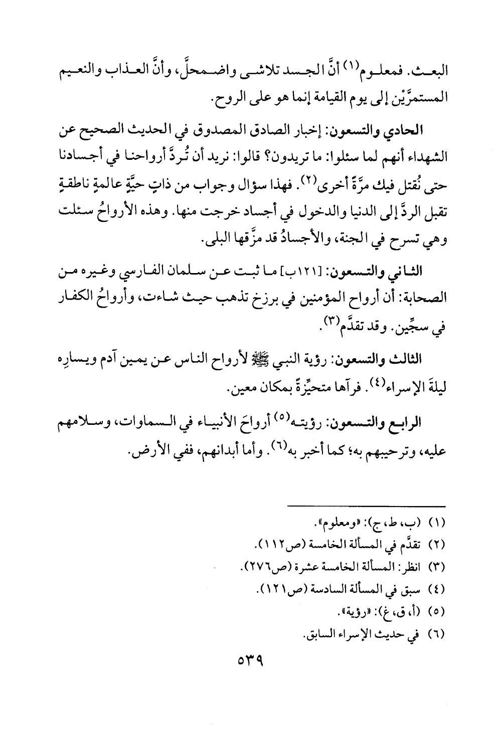 الصحابة: أن أرواح المؤمنين في برزخ تذهب حيث شاءت، وأرواح الكفار