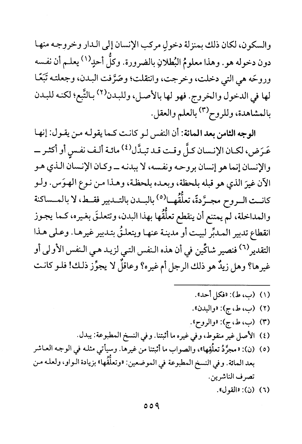 التقدير (6) فنصير شاكين في أن هذه النفس التي لزيد هي النفس الاولى و