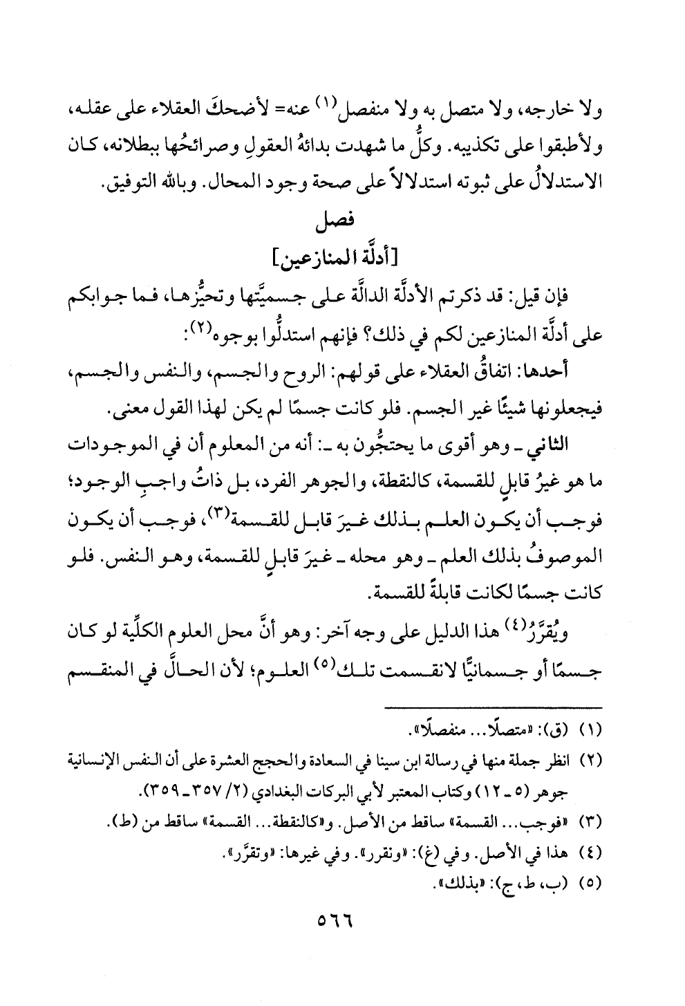 (2) انظر جملة معها في رسالة ابن سينا في السعادة وا لحجج العشرة على ان النفس الانسانية