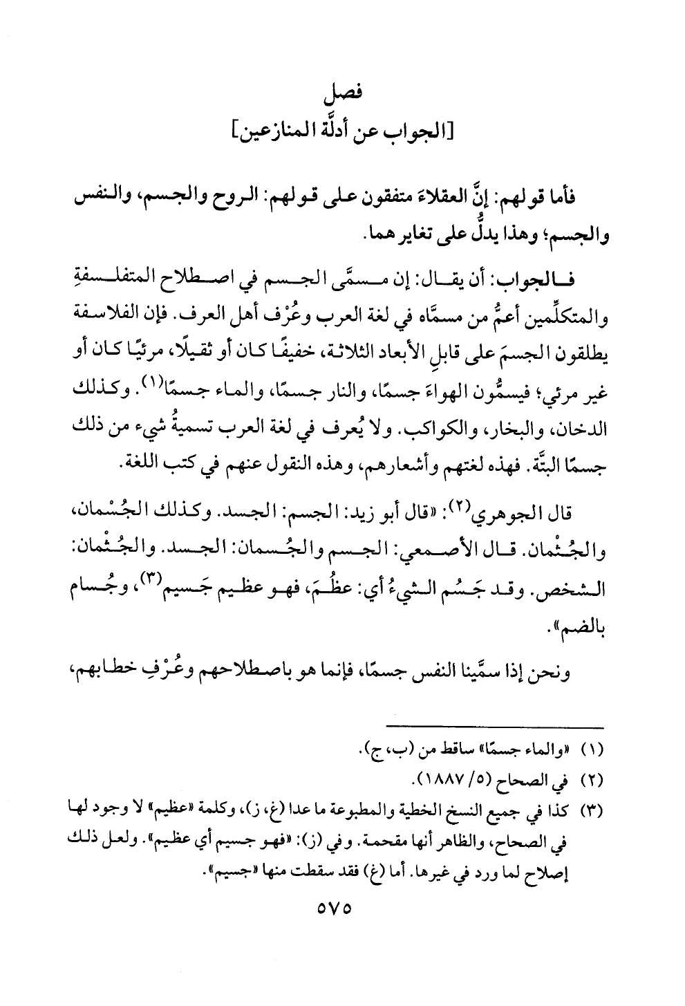 فالجواب: أن يقال: إن مسمى ا لجسم في اصطلاح المتفلسنت