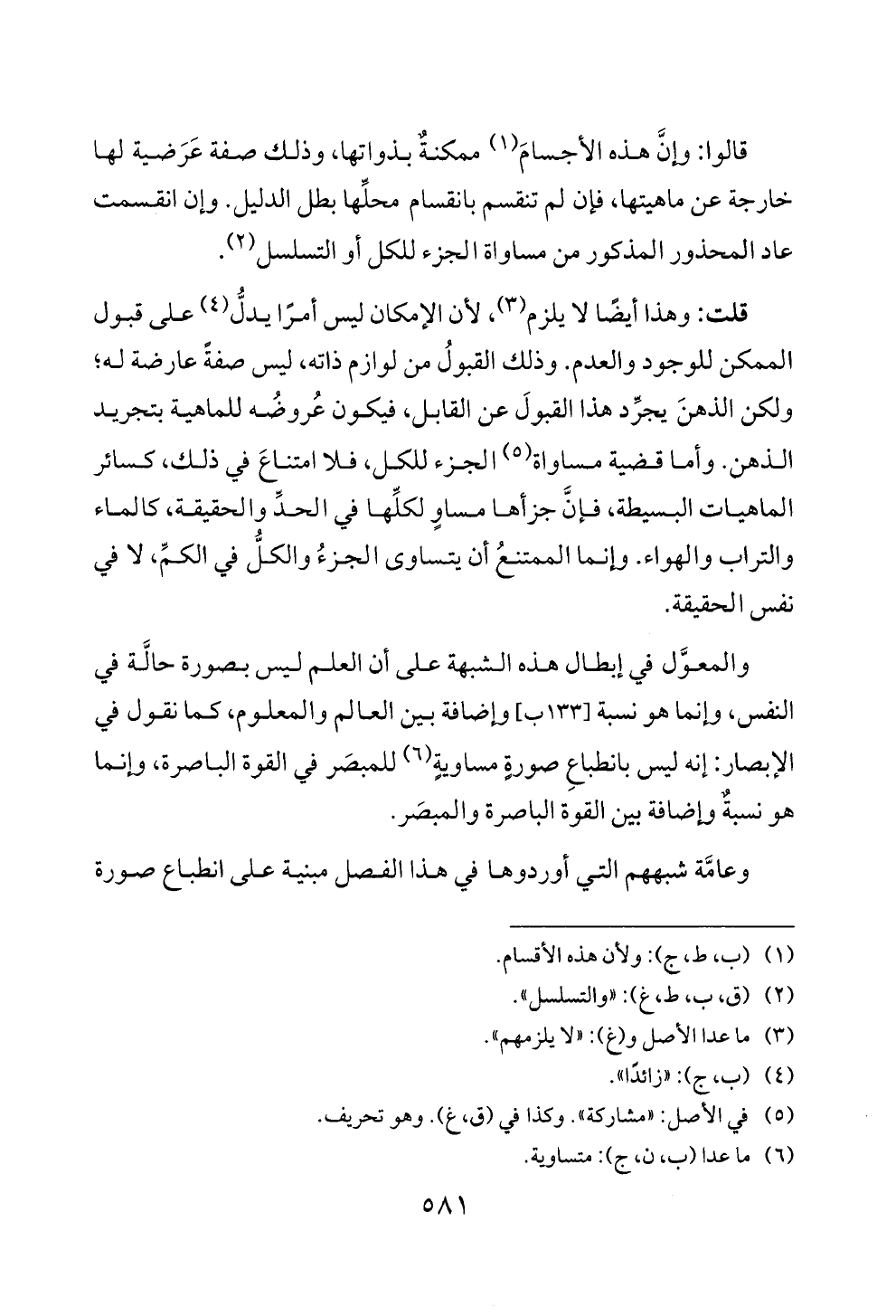 قلت: وهذا ايضا لا يلزم (3)، لأن الامكان ليس امرا يدل (4) على قبول