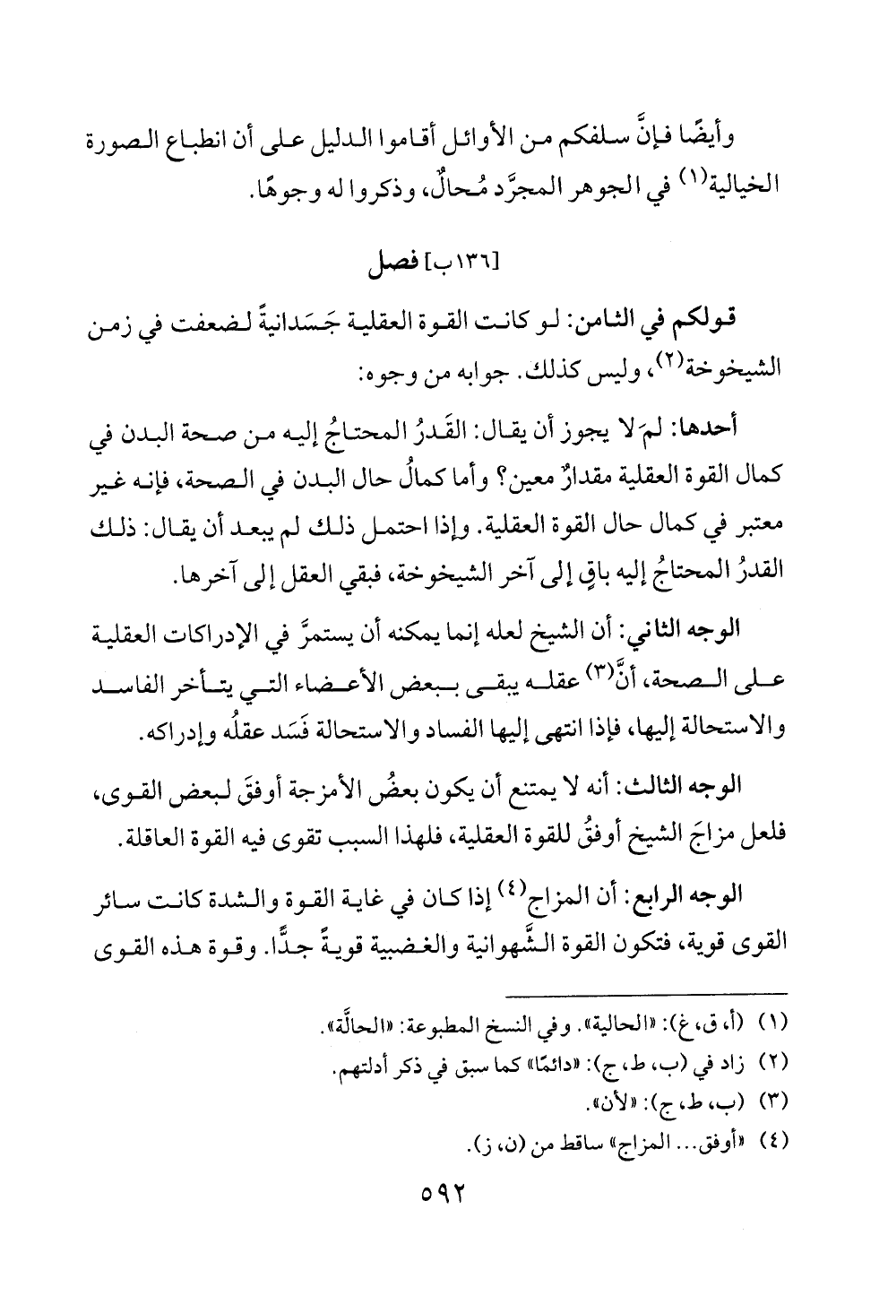 الوجه الراببع: أن المزاج (4) إذا كان في غاية القوة والشدة كانت سائر