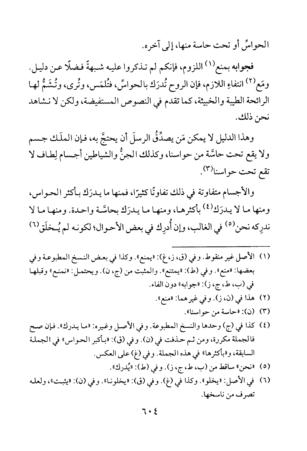 و (2) انتفاء اللازم، فان الروح تدرك لا لحواس، فتلمس، وترى، وتشم لها