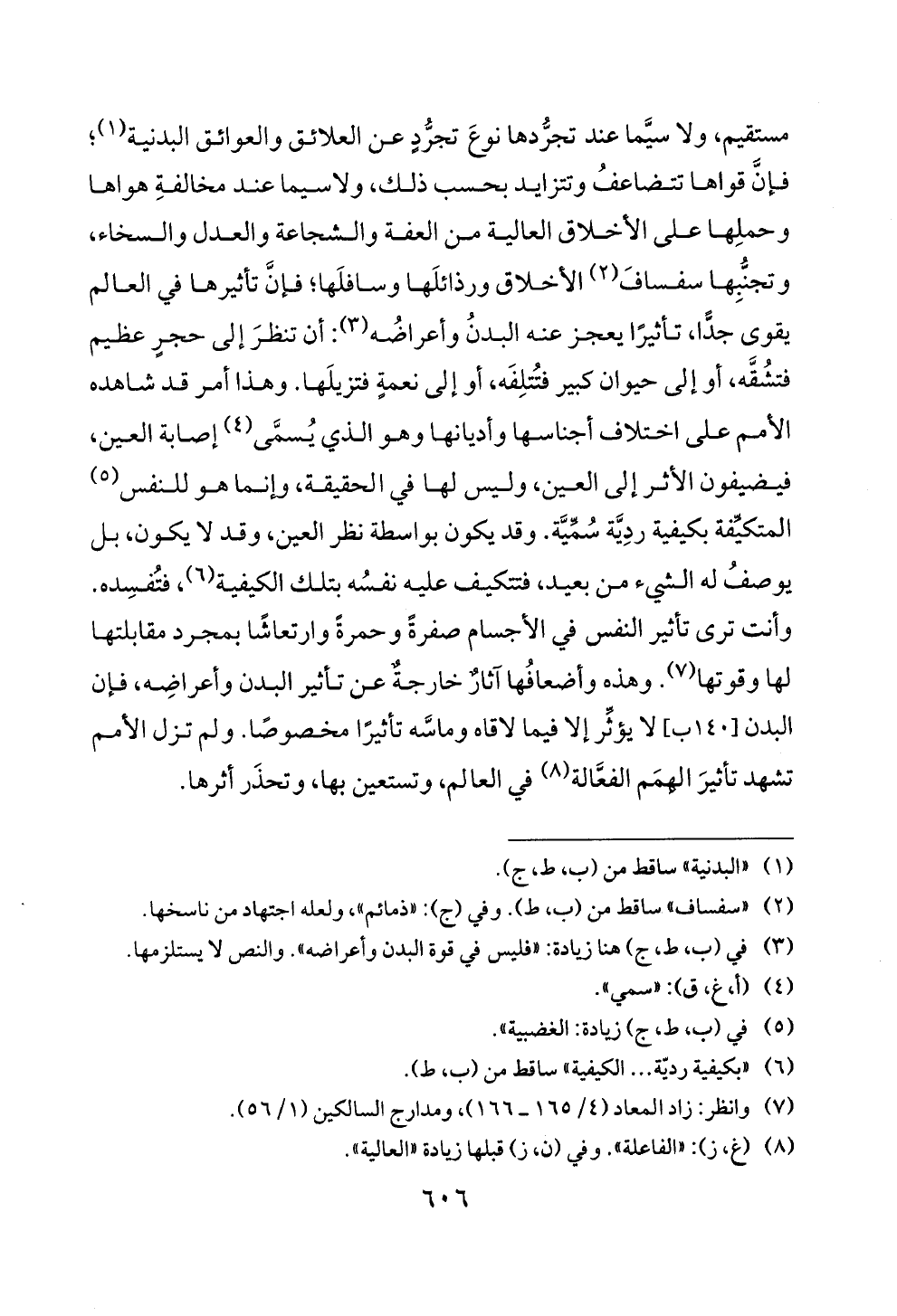 لها وقوتها (7). وهذه وأضعافها اثار خارجة عن تأثير البدن وأعراضه، فإن