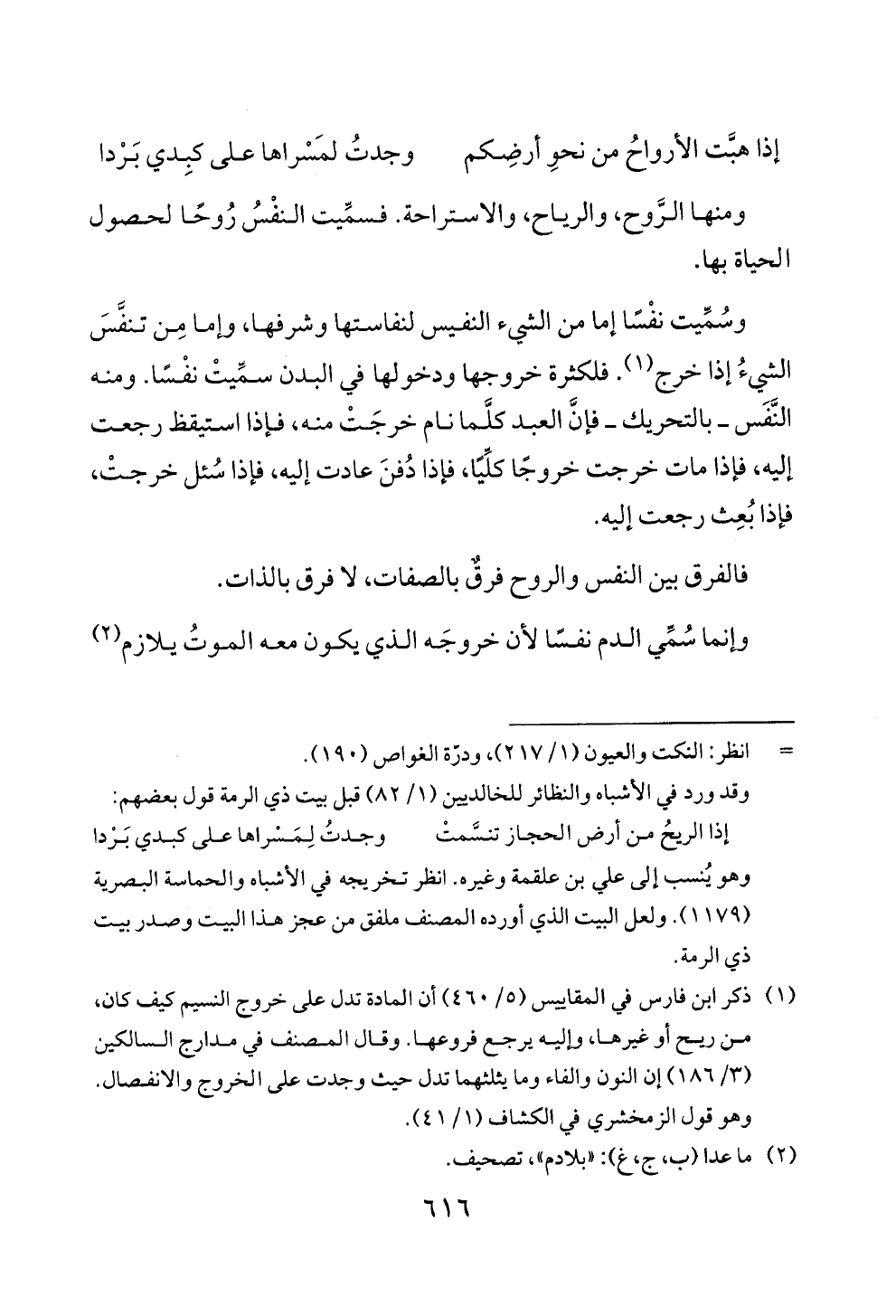 ومنها الروح، والرياح، والاستراحة. فسميت النفس روحا لحصول
