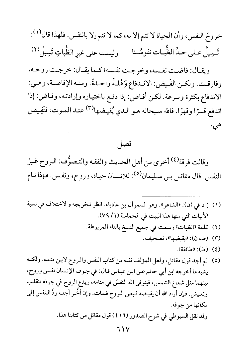 (5) لم اجد قول مقاتل، ولعل المؤلف نقله من كتاب النفس والروح لابن منده. ولكنه