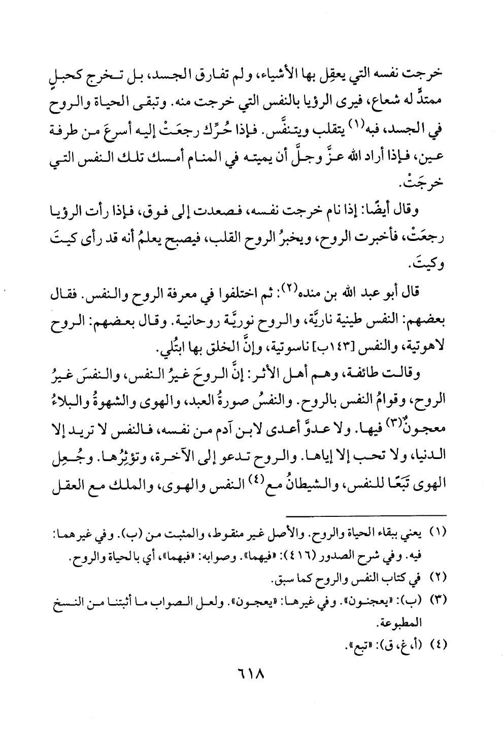 قال أبو عبد الله بن منده (2): ثم اختلفوا في معرفة الروح والنفس. فقال