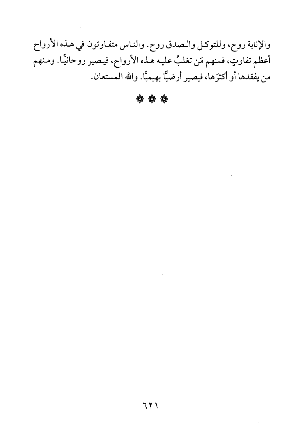 والإنابة روح، وللتوكل والصدق روح. والناس متفاوتون في هذه الارواح