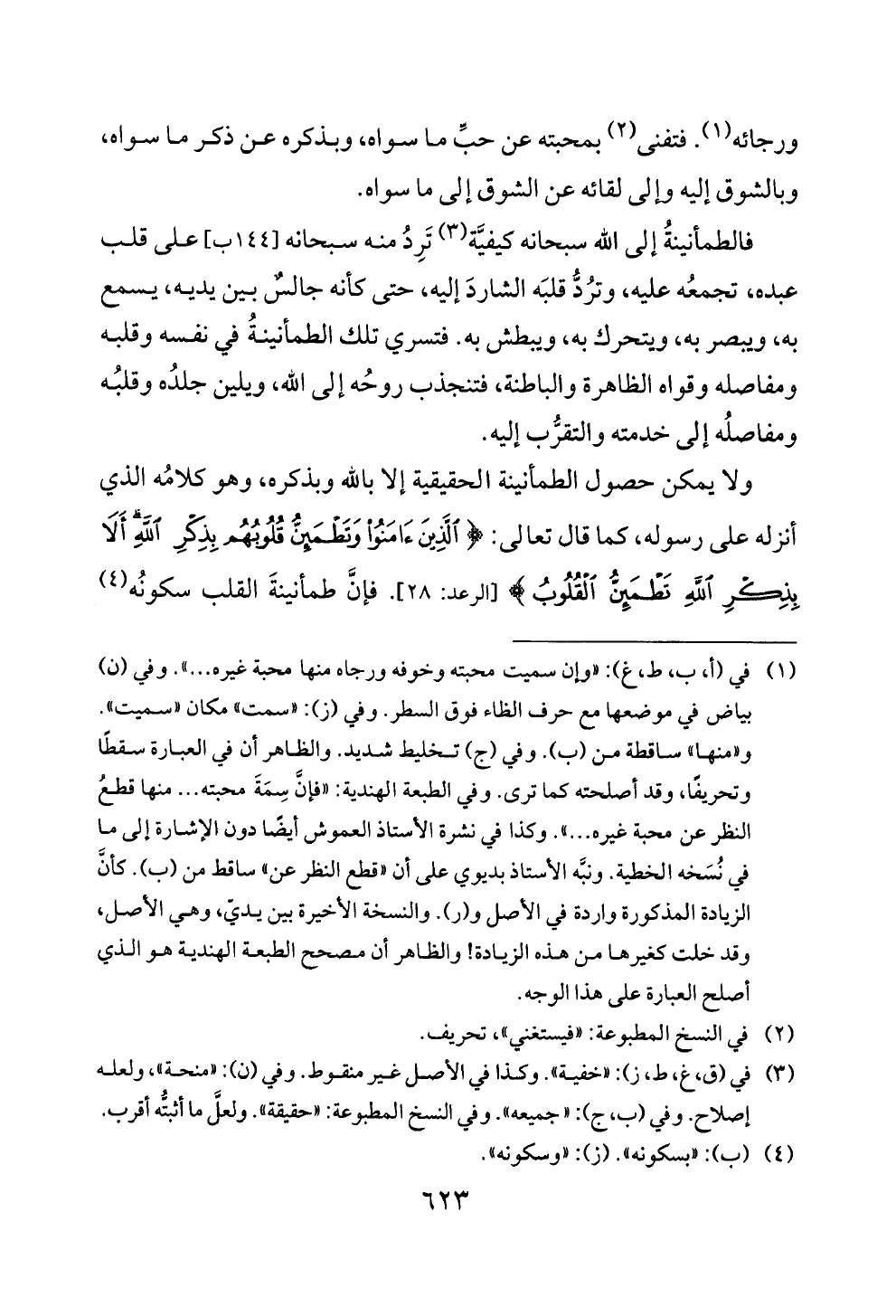 بذ! ر الله نطمبن القلوب) [الرعد: 28]. فان طمانينة القلب سكونه (4)