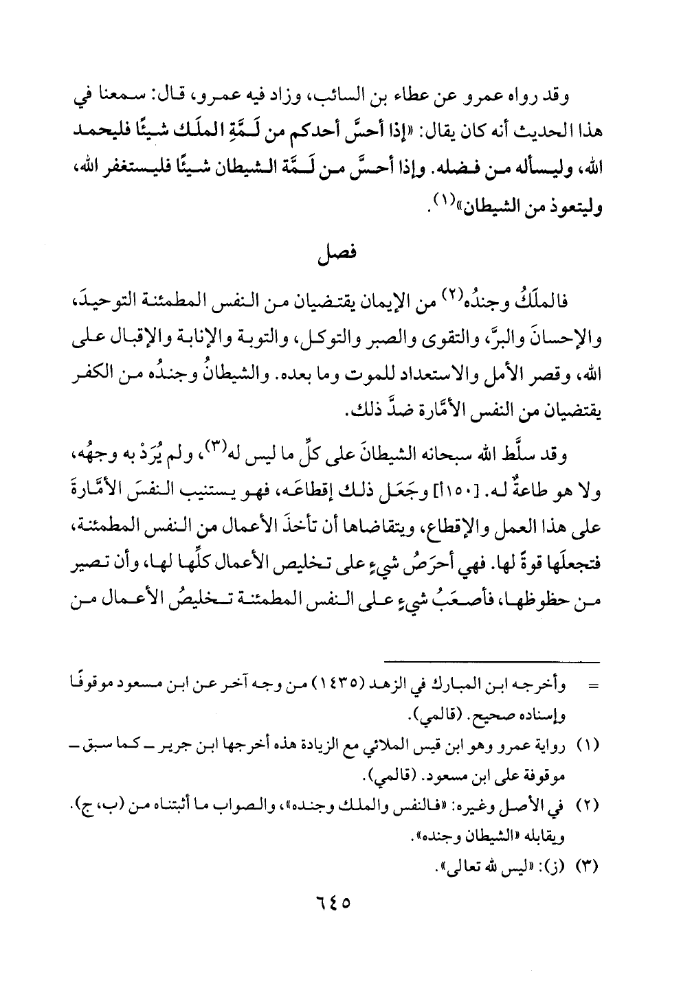 (2) في الاصل وغيره: " فالنفس و لملك وجنده "، والصواب ما أثبتناه من (ب، ج).