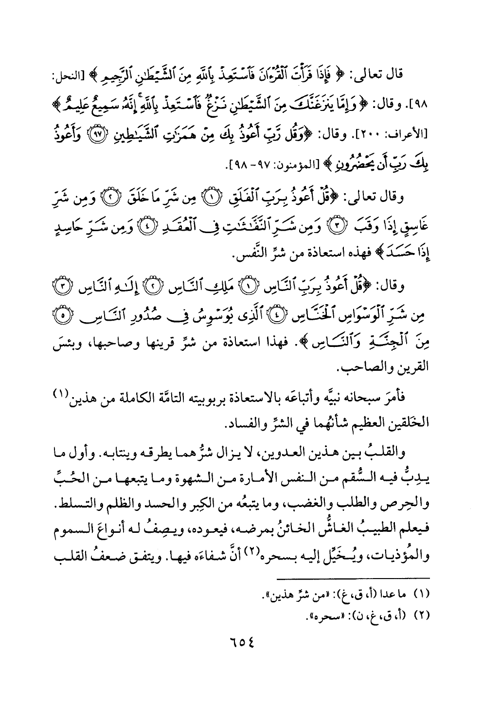 فامر سبحانه نببه وأتباعه بالاستعاذة بربوبيته التامة الكاملة من هذين (1)