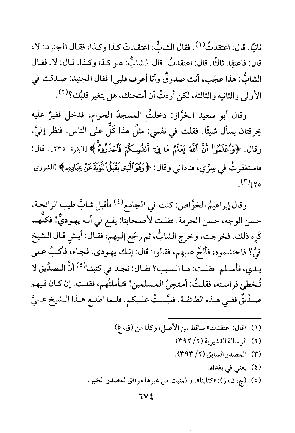 ثانيا. قال: اعتقدت (1). فقال الشاب: اعتقدت كذا وكذا، فقال الجنيد: لا،