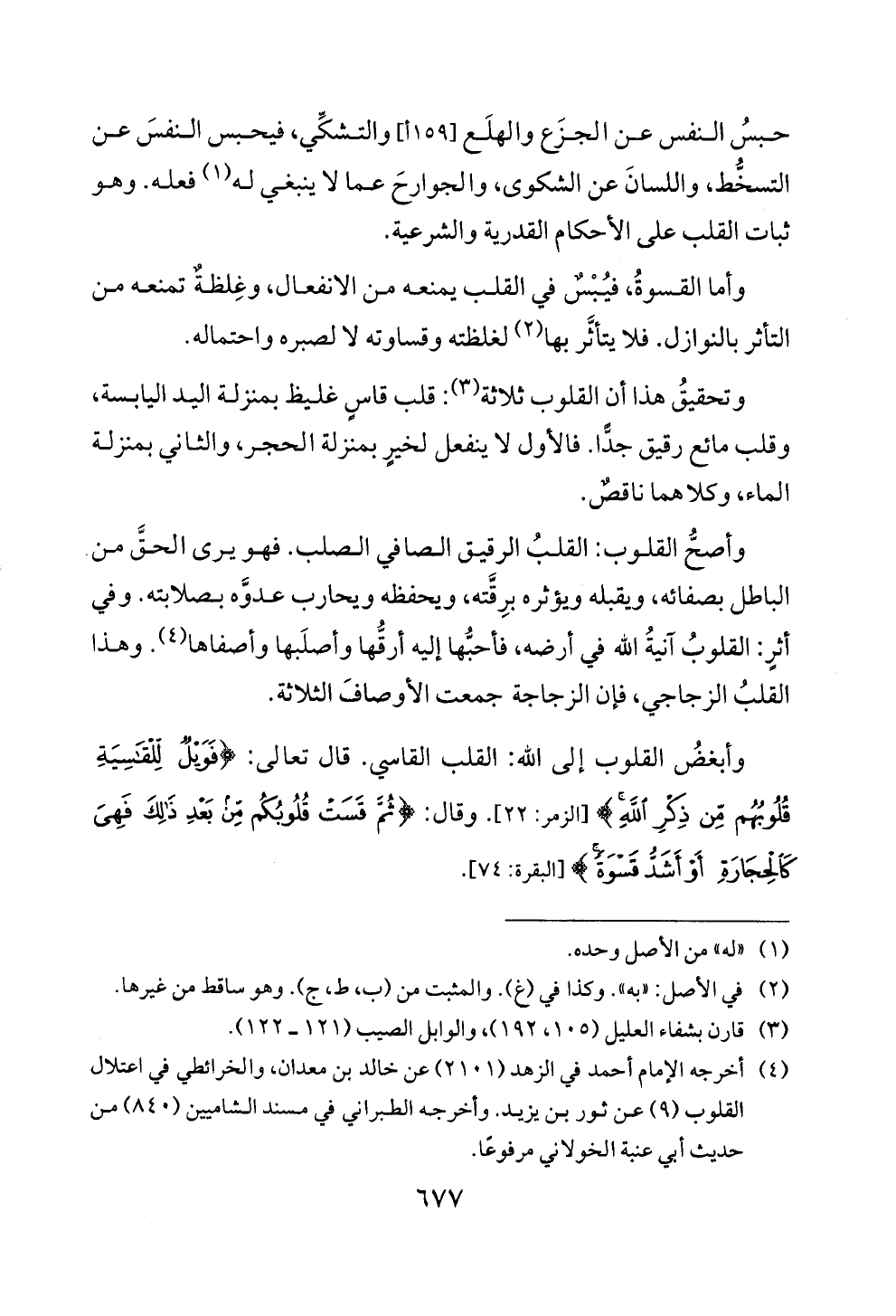 وتحقيق هذا أن القلوب ثلاثة (3): قلب قاس غليظ بمنزلة اليد اليابسة،