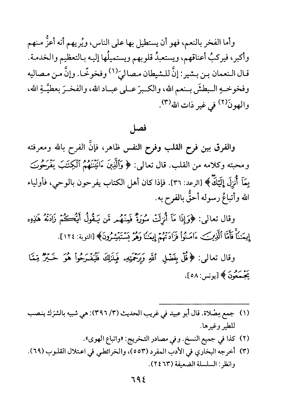 والفرق بين فرح القلب وفرح النفس ظاهر، فان الفرح بالله ومعرفته