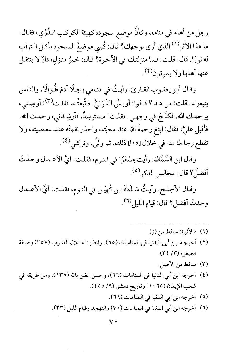 (6) اخرجه ابن أبي الدنيا في المنامات (0 7) والتهجد وقيام الليل (33).