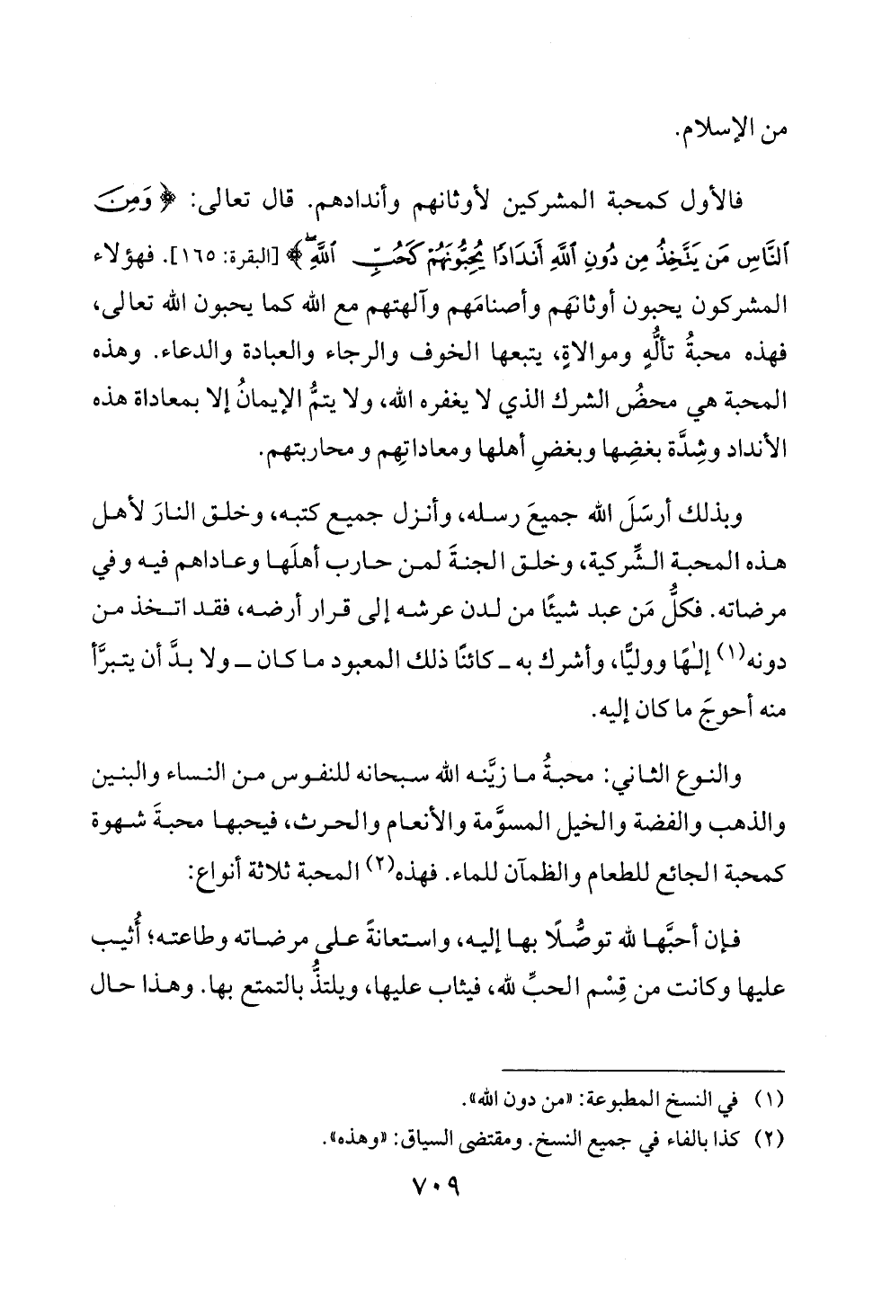فالأول كمحبة المشركين لاوثانهم وأندادهم. قال تعالى: < ومن