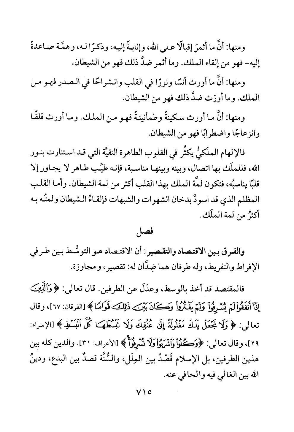 فالمقتصد قد أخذ بالوسط، وعدل عن الطرفين. قال تعالى: < والذفي