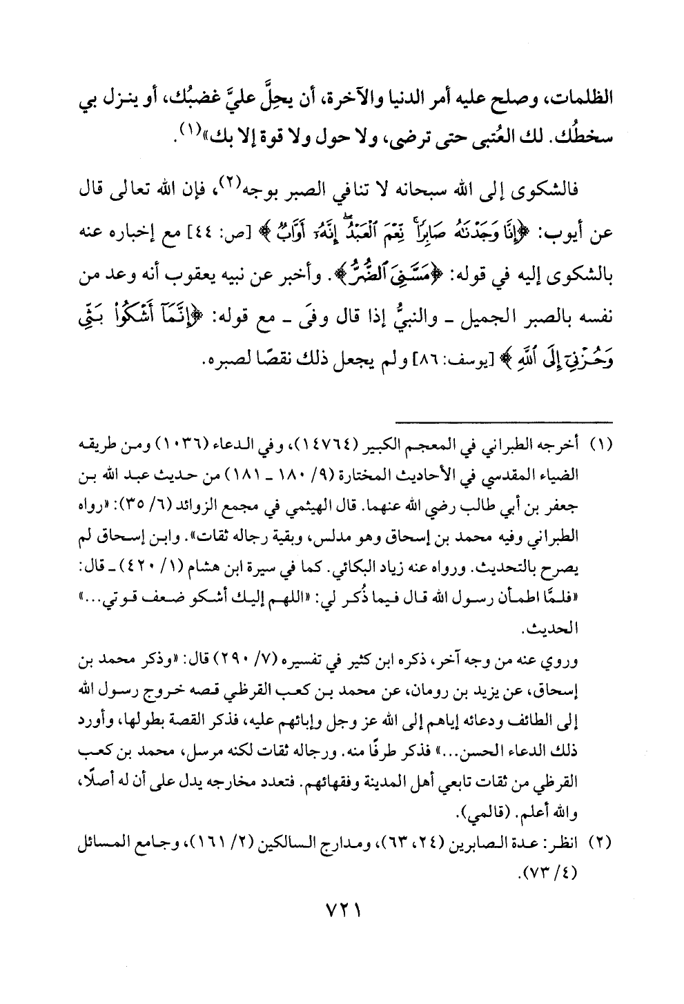 فالشكوى إلى الله سبحانه لا تنافي الصبر بوجه (2)، فإن الله تعالى قال