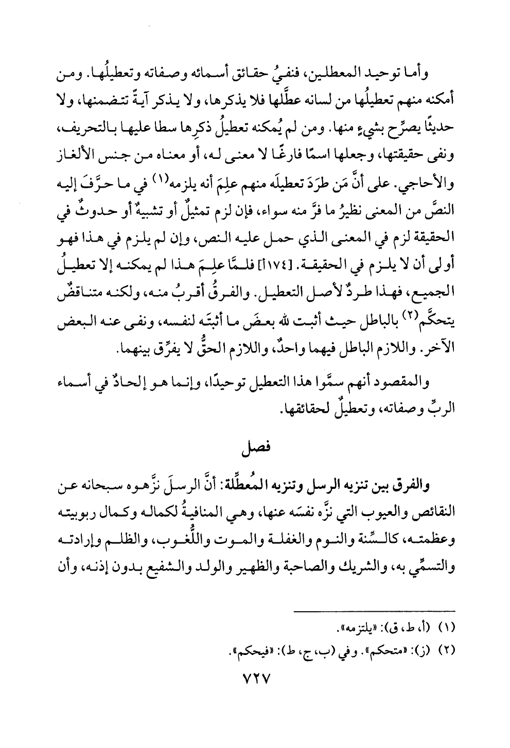 أولى أن لا يلزم في الحقيقة. [174 أ] فلما علم هذا لم يمكنه إلا تعطيل