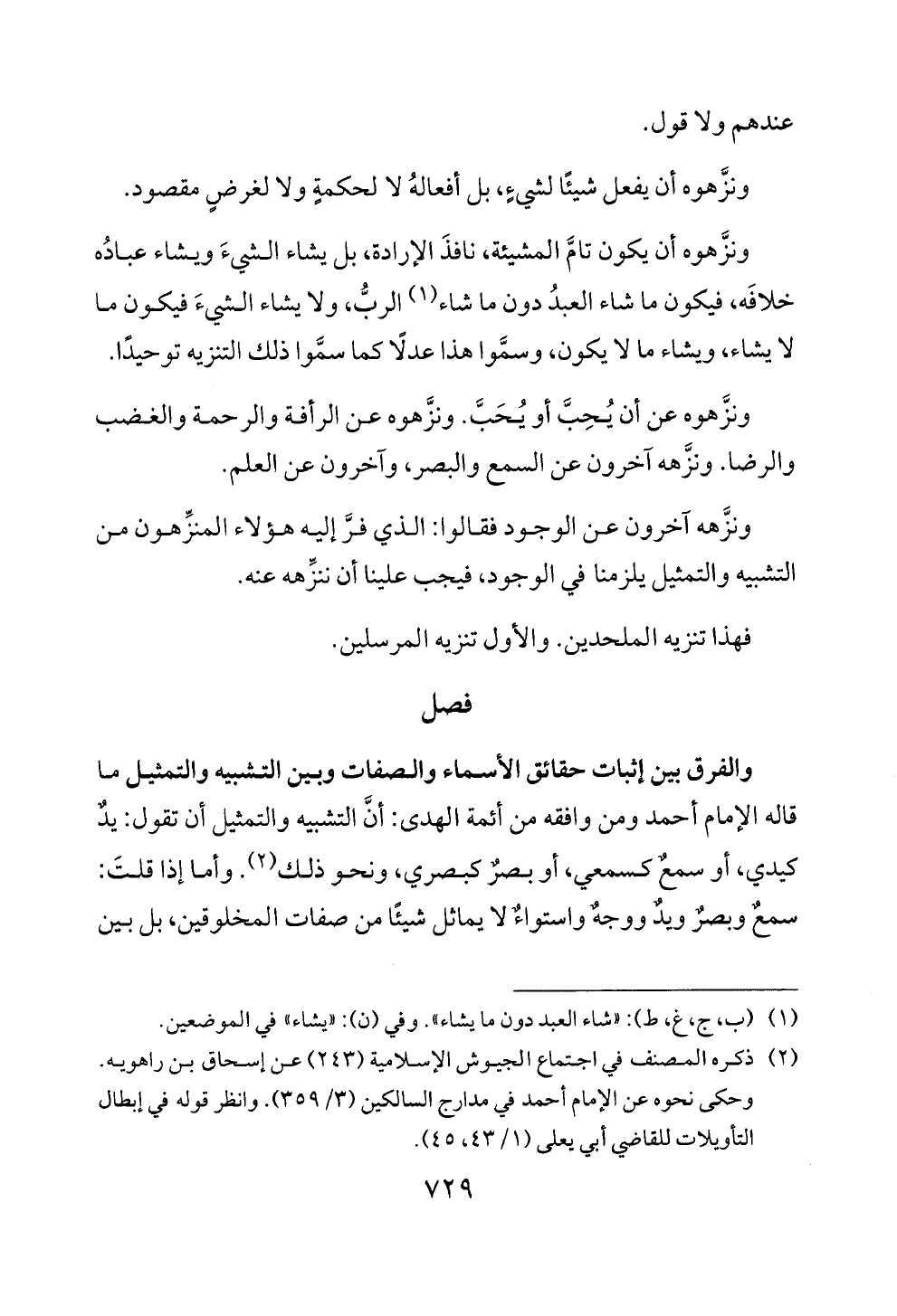 ونزهوه أن يكون تام المشيئة، نافذ الارادة، بل يشاء الشيء ويشاء عباده