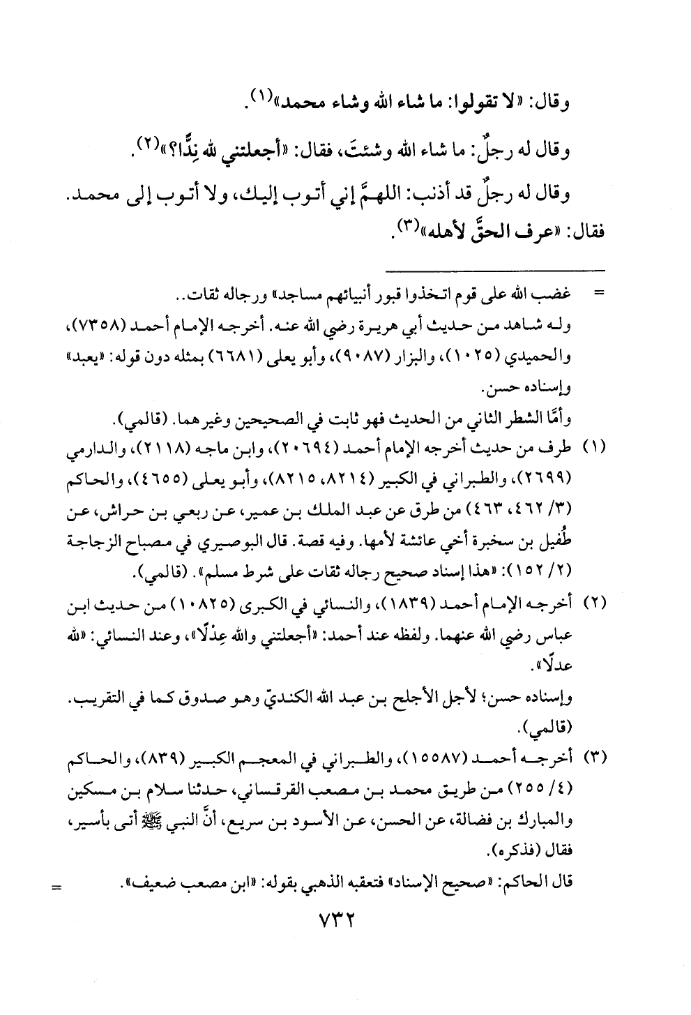 وقال: " لا تقولوا: ما شاء الله وشاء محمد" (1).