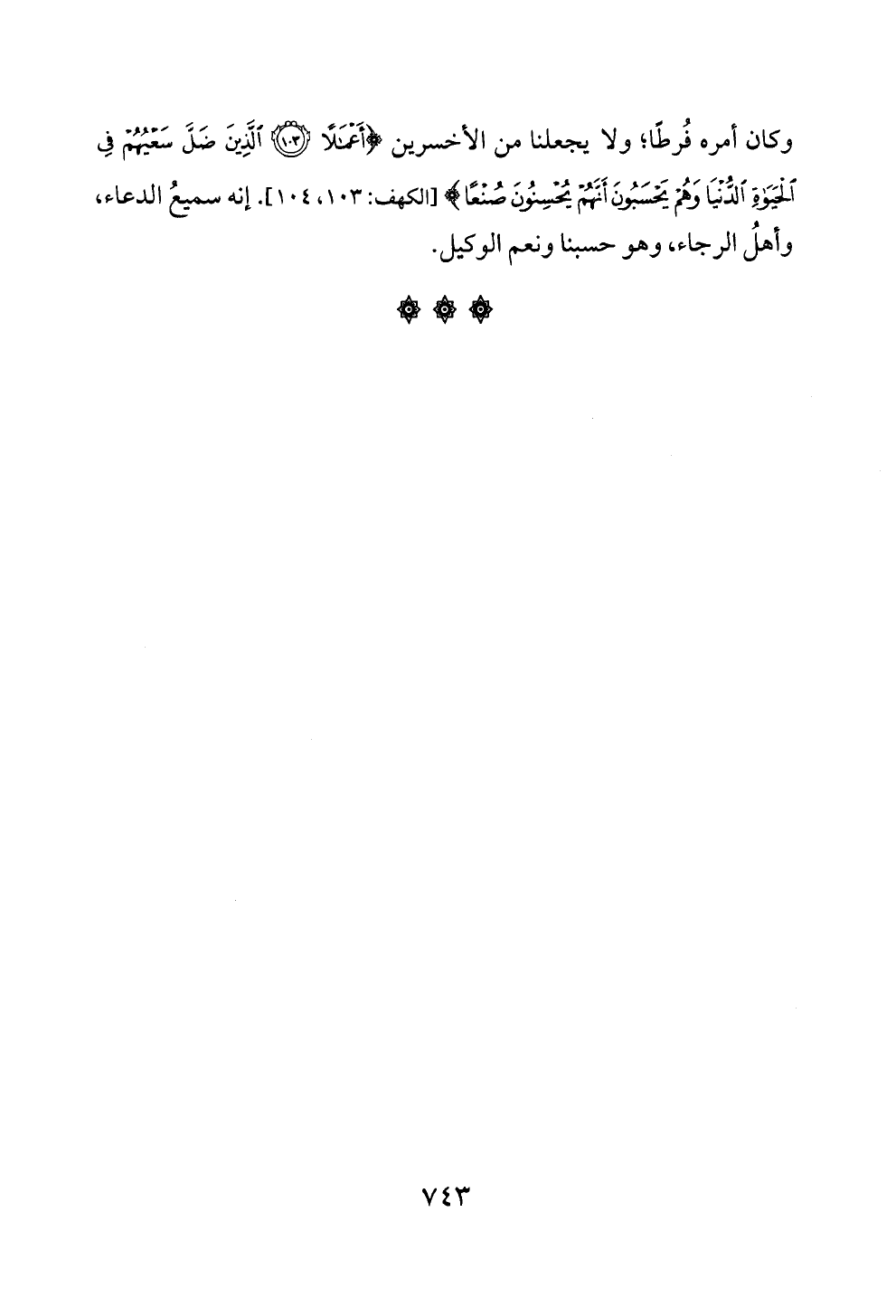 وكان أمره فرطا؛ ولا يجعلنا من الاخسرين < كلا! اتذين ضل سعيهتم فى