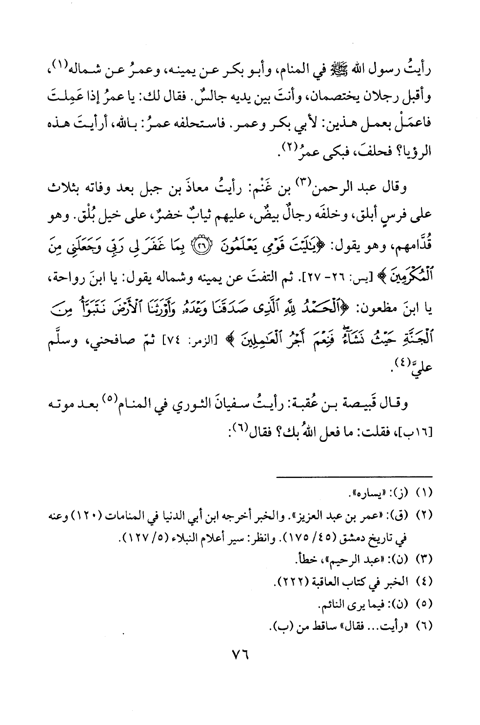 (2) (ق): "عمر بن عبد العزيز". و 1 لخبر أخرجه ابن ابي الدنيا في المنامات (0 12) وعنه