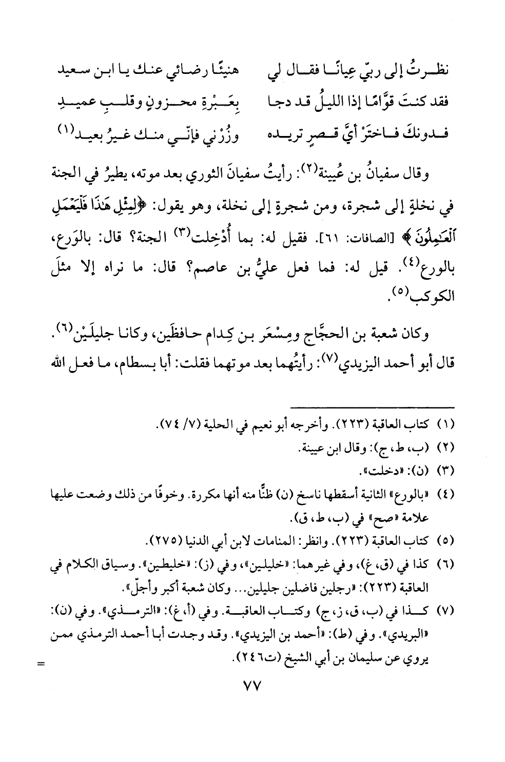 (5) كتاب العاقبة (223). وانظر: المنامات لابن ابي الدنيا (275).