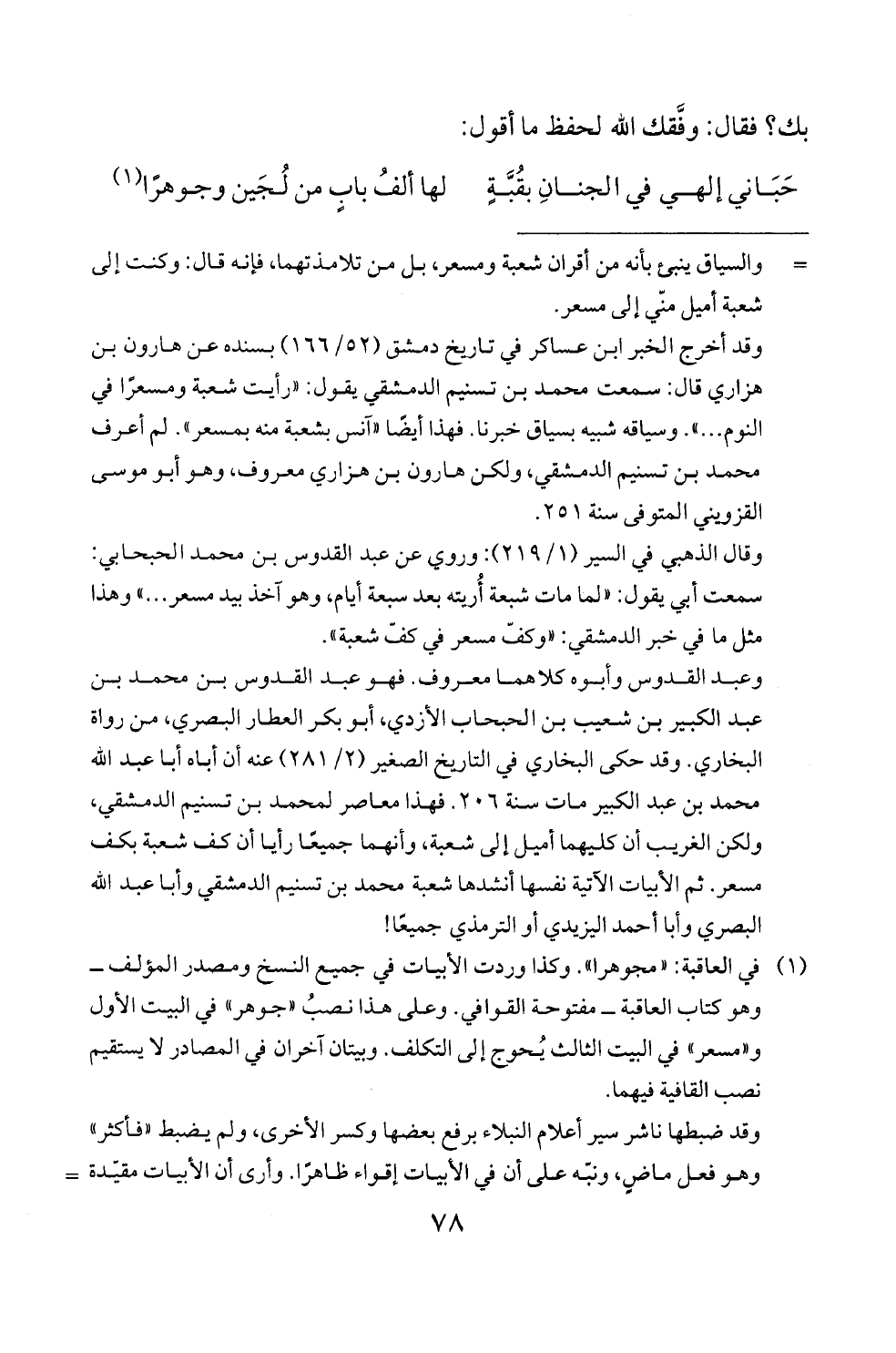 مسعر. ثم الابيات الاتية نفسها انشدها شعبة محمد بن تسنيم الدمشقي وابا عبد الله