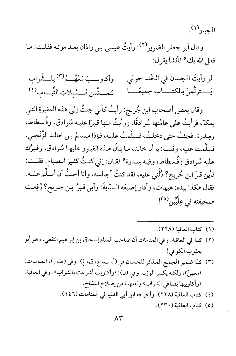 (2) كذا في العاقبة. وفي المنامات ان صاحب المنام إسحاق بن إبراهيم الثقفي، وهو ابو