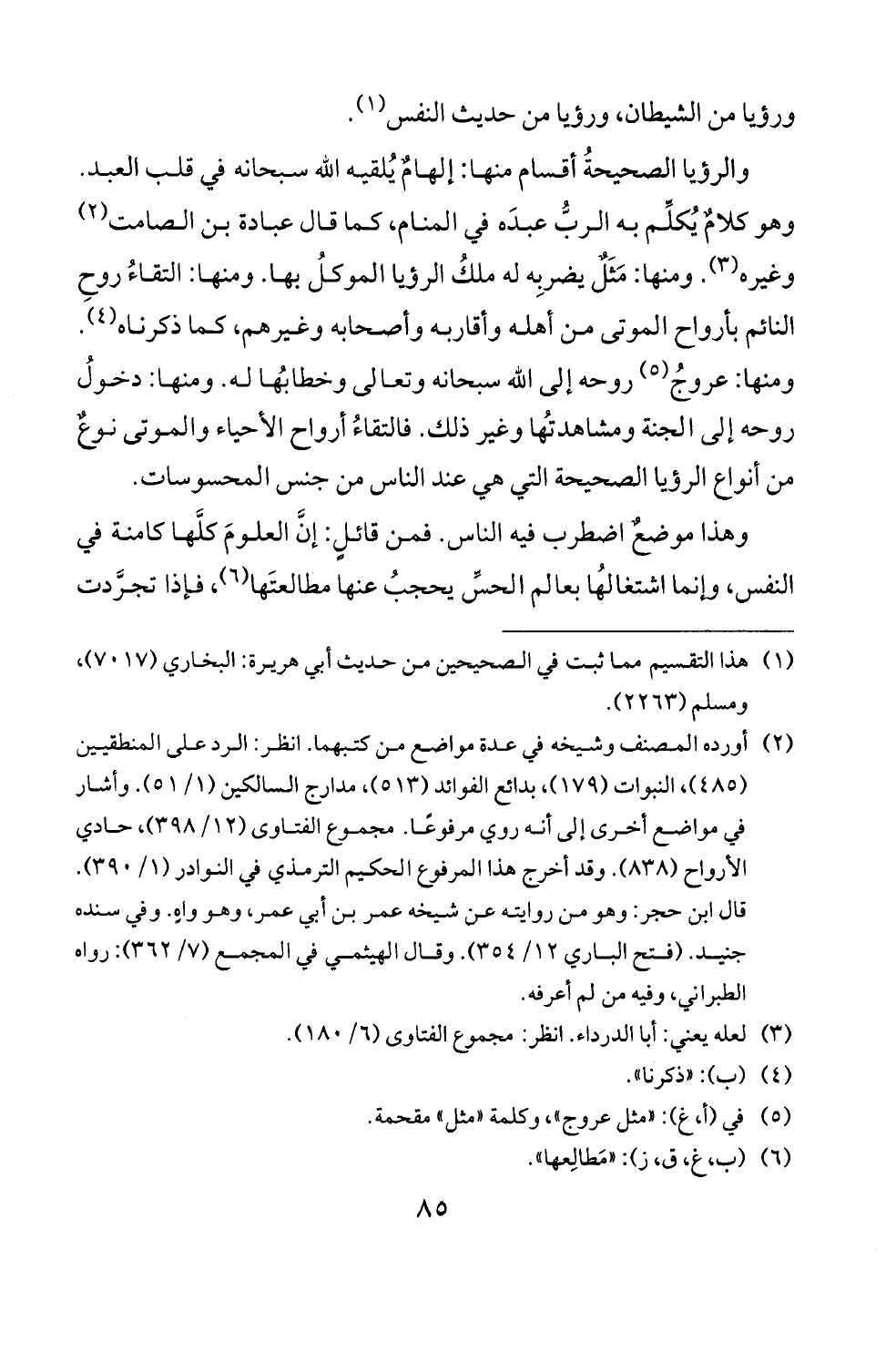 وغيره (3). ومنها: مثل يضربه له ملك الرويا الموكل بها. ومنها. التقاء روج