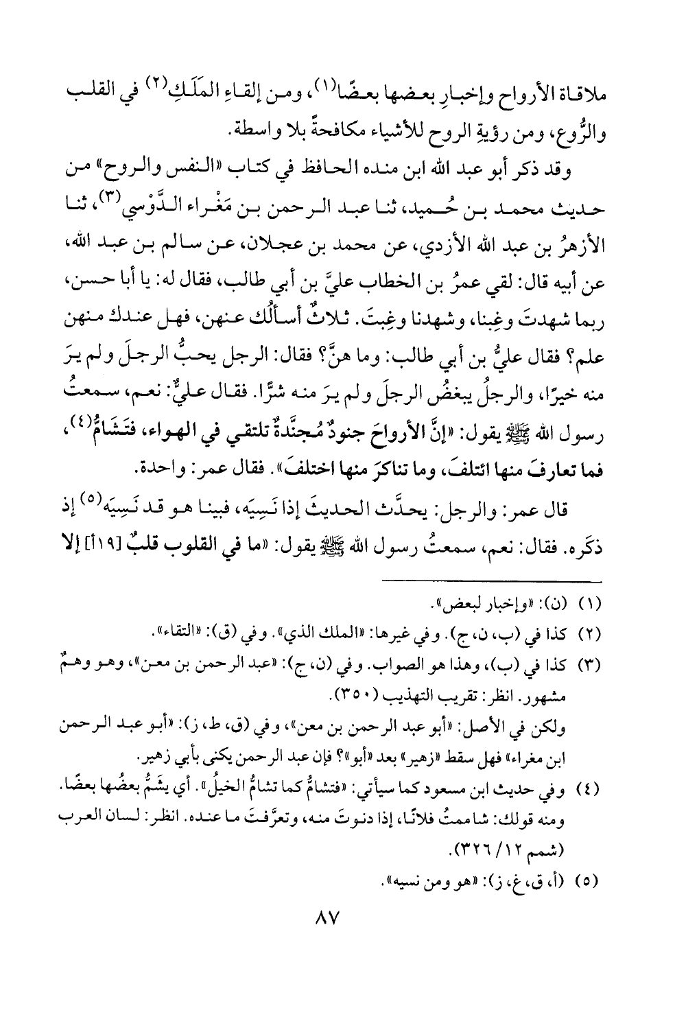 وقد ذكر أبو عبد الله ابن منده ا لحافط في كتاب "النفس والروح " من