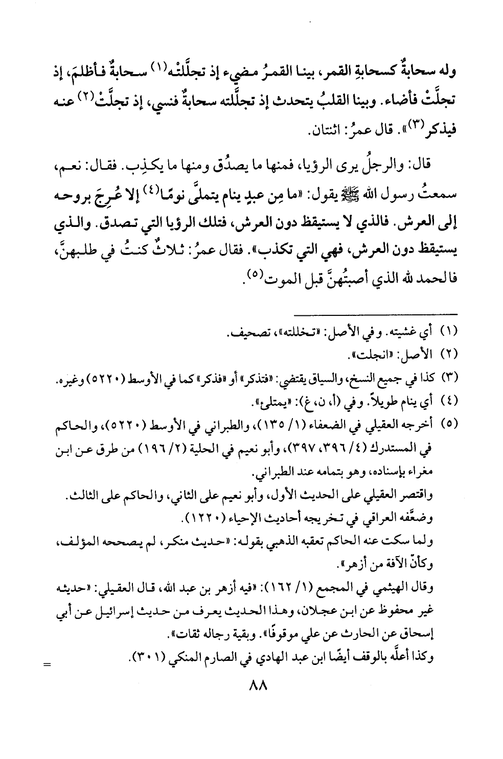 سمعت رسول الله لمجي! يقول: " ما من عبد ينام يتملى نوما (4) الا عرج بروحه