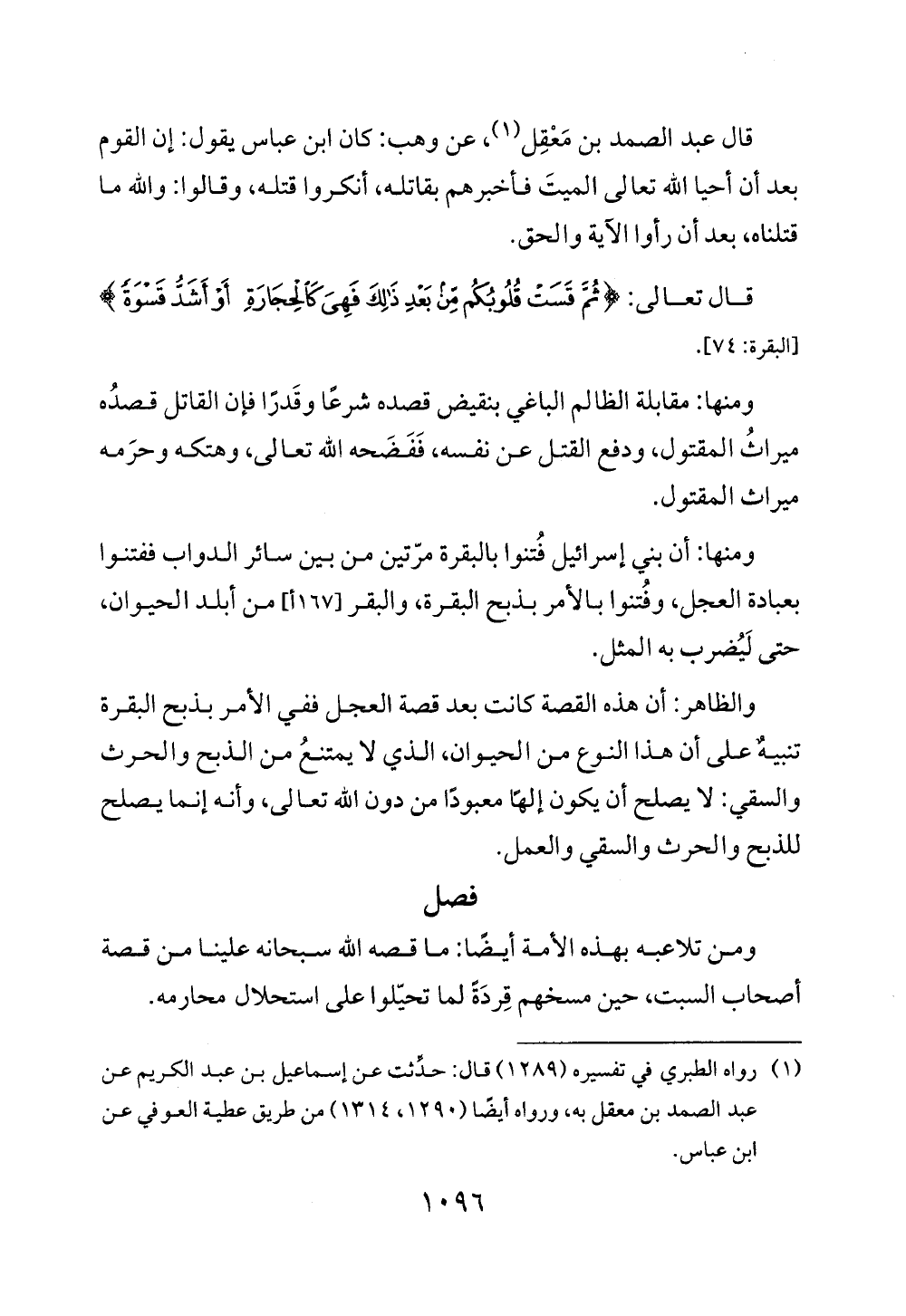 قال عبد الصمد بن مَعْقِل (¬1)، عن وهب: كان ابن عباس يقول: إن القوم بعد أن أحيا الله تعالى الميتَ فأخبرهم بقاتله، أنكروا قتله، وقالوا: والله ما قتلناه، بعد أن رأوا الآية والحق.