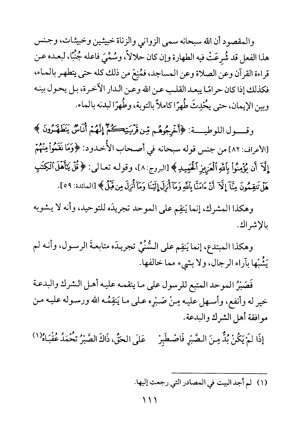 وقول اللوطية: {أَخْرِجُوهُمْ مِنْ قَرْيَتِكُمْ إِنَّهُمْ أُنَاسٌ يَتَطَهَّرُونَ} [الأعراف: 82] من جنس قوله سبحانه في أصحاب الأُخدود: {وَمَا نَقَمُوا مِنْهُمْ إِلَّا أَنْ يُؤْمِنُوا بِاللَّهِ الْعَزِيزِ الْحَمِيدِ} [البروج: 8] وقوله تعالى: {قُلْ يَاأَهْلَ الْكِتَابِ هَلْ تَنْقِمُونَ مِنَّا إِلَّا أَنْ آمَنَّا بِاللَّهِ وَمَا أُنْزِلَ إِلَيْنَا وَمَا أُنْزِلَ مِنْ قَبْلُ} [المائدة: 59].