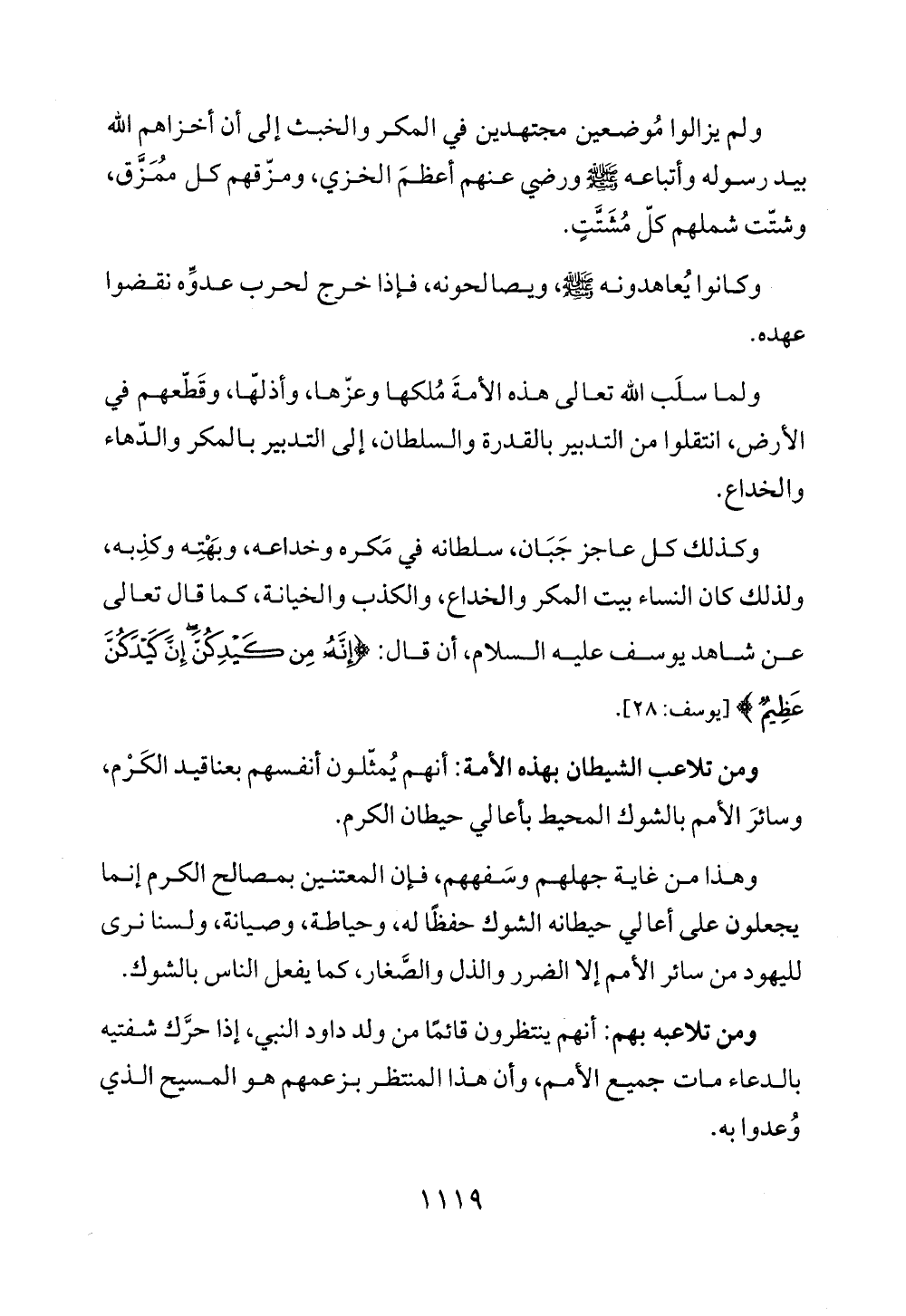ولما سلَب الله تعالى هذه الأمةَ مُلكها وعزّها، وأذلهّا، وقَطّعهم في الأرض، انتقلوا من التدبير بالقدرة والسلطان، إلى التدبير بالمكر والدّهاء والخداع.