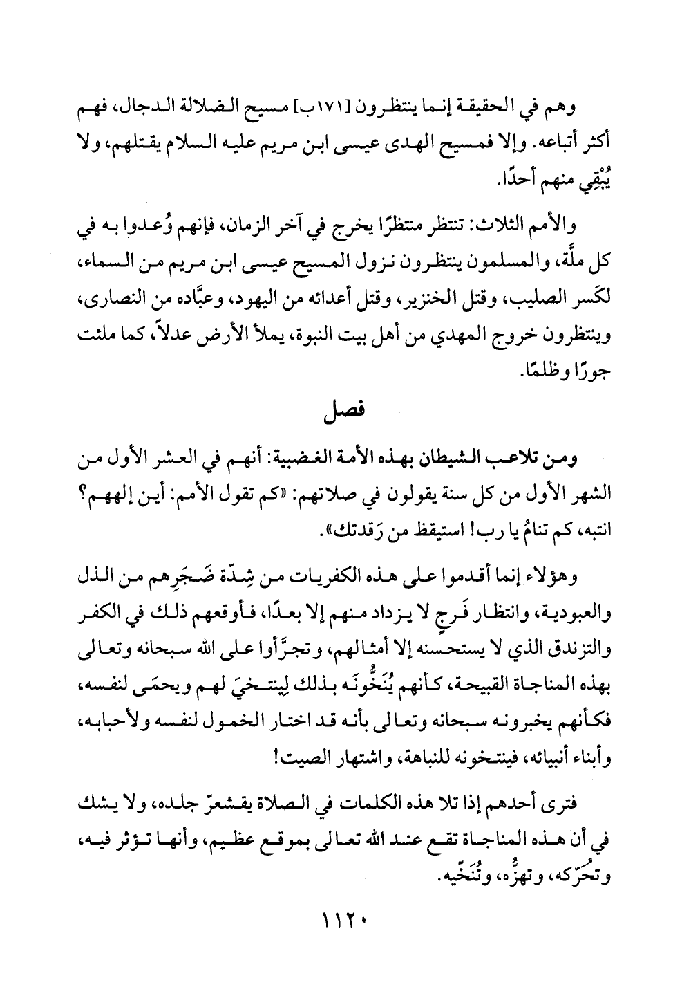 وهم في الحقيقة إنما ينتظرون [171 ب] مسيح الضلالة الدجال، فهم أكثر أتباعه. وإلا فمسيح الهدى عيسى ابن مريم عليه السلام يقتلهم، ولا يُبْقِي منهم أحدًا.